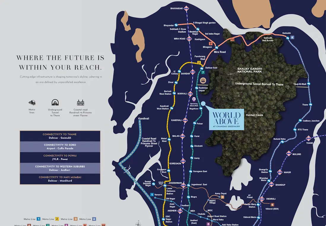 At Borivali East - By Chandak GroupEmbark on a life beyond the ordinary, where the boundaries between nature and city life seamlessly merge. Nestled in Borivali, introducing LuxAiry Collection at Chandak GreenAiry, an exclusive haven with 2BHK luxurious balcony residences starting 37th Floor & Above. Escape the mundane as your balcony transforms into a sanctuary, granting you breathtaking views of the majestic Sanjay Gandhi National Park on one side and the captivating cityscape on the other.